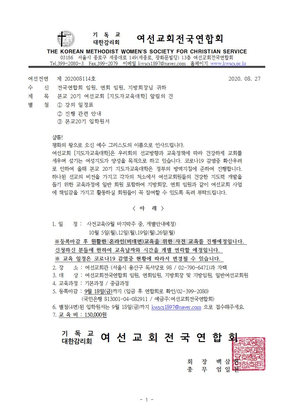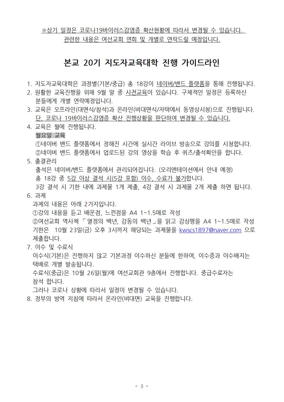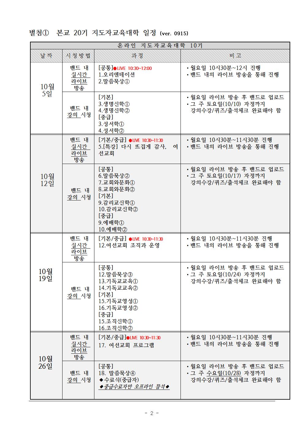 본교 20기 지도자교육대학 일정알림의 건(0915 수정분)