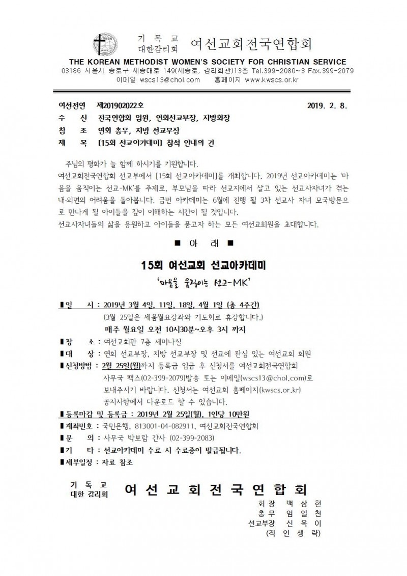 2019 분교 3기 지도자교육대학 관련 알림의 건